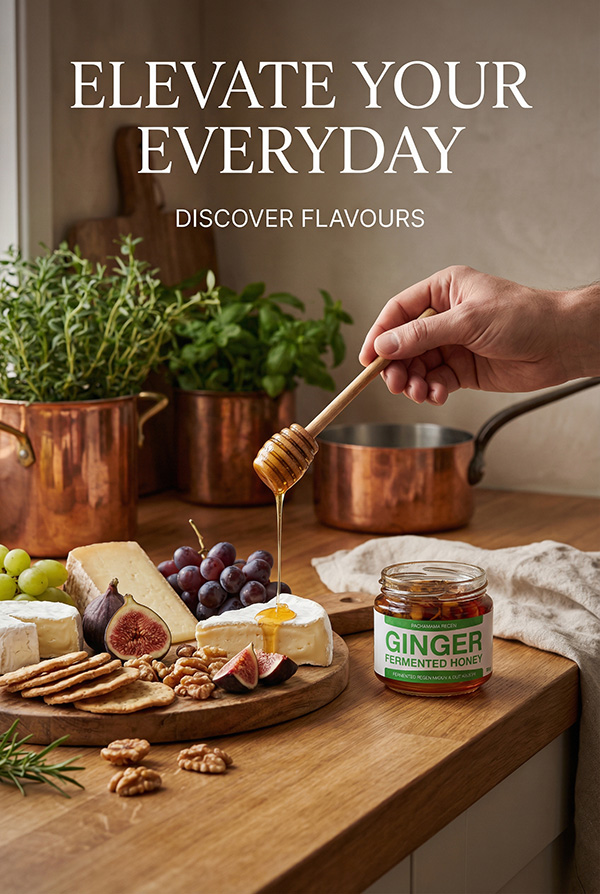Cheese & Charcuterie: Tangy fermented honey amplifies sharp cheeses and charcuterie flavours.